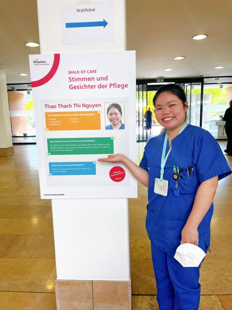 Vậy thì chắn chắn sẽ có bạn hỏi tôi :” Ơ thế là bạn bỏ luôn nghề yêu thích là làm giáo viên dạy Văn của mình à?“, thì tôi cũng sẵn sàng chia sẻ là chính nhờ vào thời đại 4.0 mà tôi đã biến hóa đam mê của mình ở những lĩnh vực khác, suốt 5 năm sống học tập và làm việc tại Đà Nẵng tôi là gia sư Tiếng Anh cho các bạn nhỏ, và vì muốn truyền đạt những kinh nghiệm cũng như trải nghiệm tôi trở thành Youtuber, một người kể về ngành nghề Điều Dưỡng tại Đức và các kinh nghiệm bài học mà tôi rút ra được cho người xem của tôi, và hơn hết ngày hôm nay các bạn đang thưởng thức ” tách trà” đầu tiên của tôi, đứa con tinh thần ” tea time with me” chính là nơi tôi thỏa sức đam mê với sở thích viết lách của mình. Ngoài ra, tại bệnh viện nơi tôi làm việc tôi còn hướng dẫn các học viên Điều Dưỡng người Đức và người nước ngoài, cầm tay chỉ việc và giải thích cho các bạn ấy mỗi ngày về công việc tại Khoa tạo cho tôi niềm vui và động lực đi làm mỗi ngày dù có đôi lúc vì rào cản ngôn ngữ khiến tôi rất áp lực, nhưng đó cũng chính là một động lực thúc đẩy tôi phải phát triển bản thân từng ngày từ kiến thức y học cho đến kĩ năng giao tiếp ngôn ngữ.